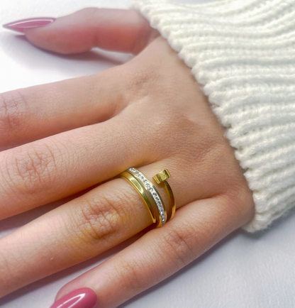 Golden Stainless Steel Nail Ring with Shining Rinshine Stones